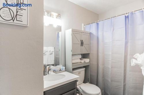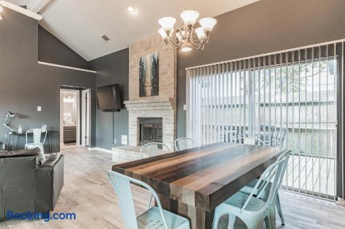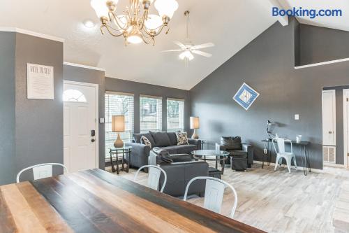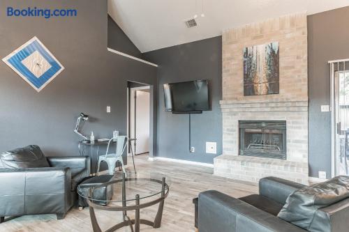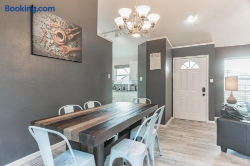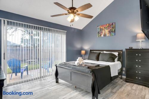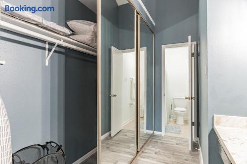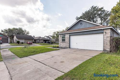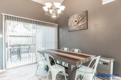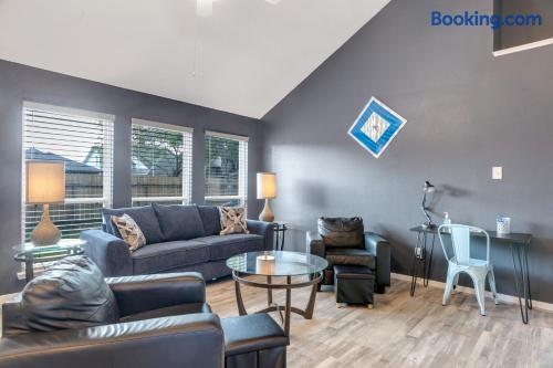Stay Happy Stay Long (Houston) is located near the South 59 Frwy and Sam Houston Tollway/Beltway 8. Residents in the area walk for exercise in a well-manicured neighborhood. Our guests can conveniently access popular locations within a short drive to the Galleria Mall, Medical Center, Sugar Land, and City Centre. Our house has an enclosed gate, smart lock entries, a garage keypad, and two lounge areas for outdoor conversations. Experience the eclectic design of this house.