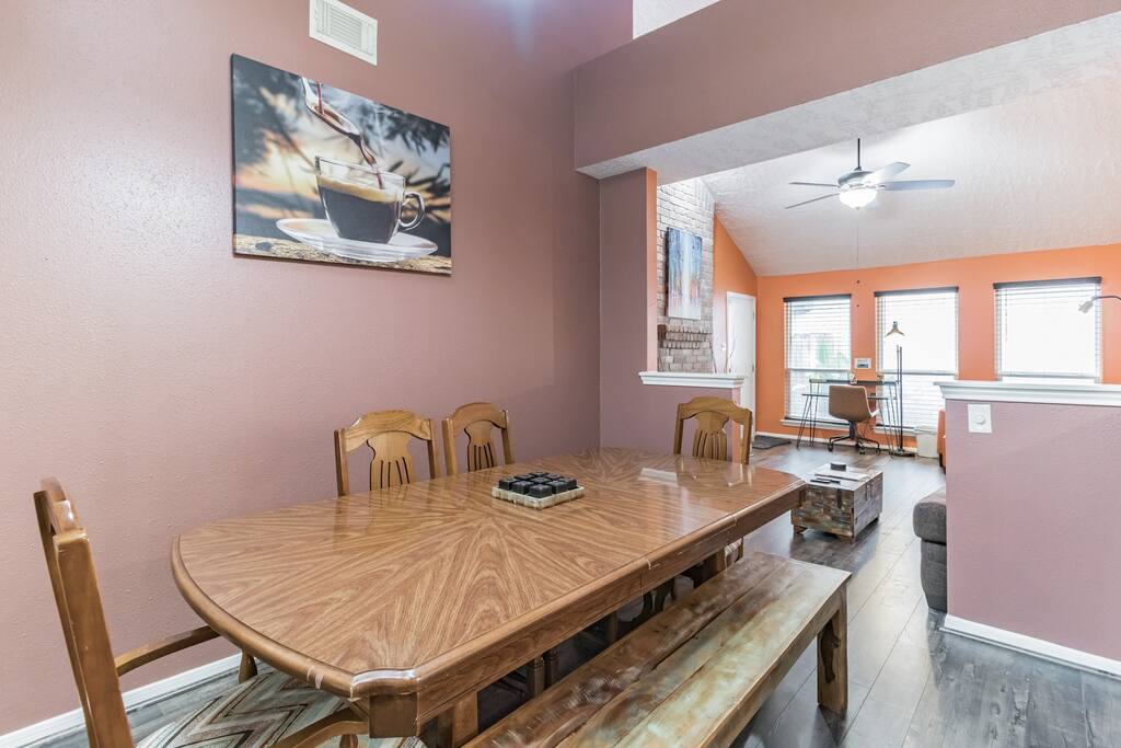 This house has an eclectic decor, space to stretch out, and enjoy the sound system to your favorite music. Step outside onto two side patios and enjoy the breeze as you sit in the lounge chairs. The house has an enclosed gate for kids or pets, smart lock entries, and a garage remote and keypad.