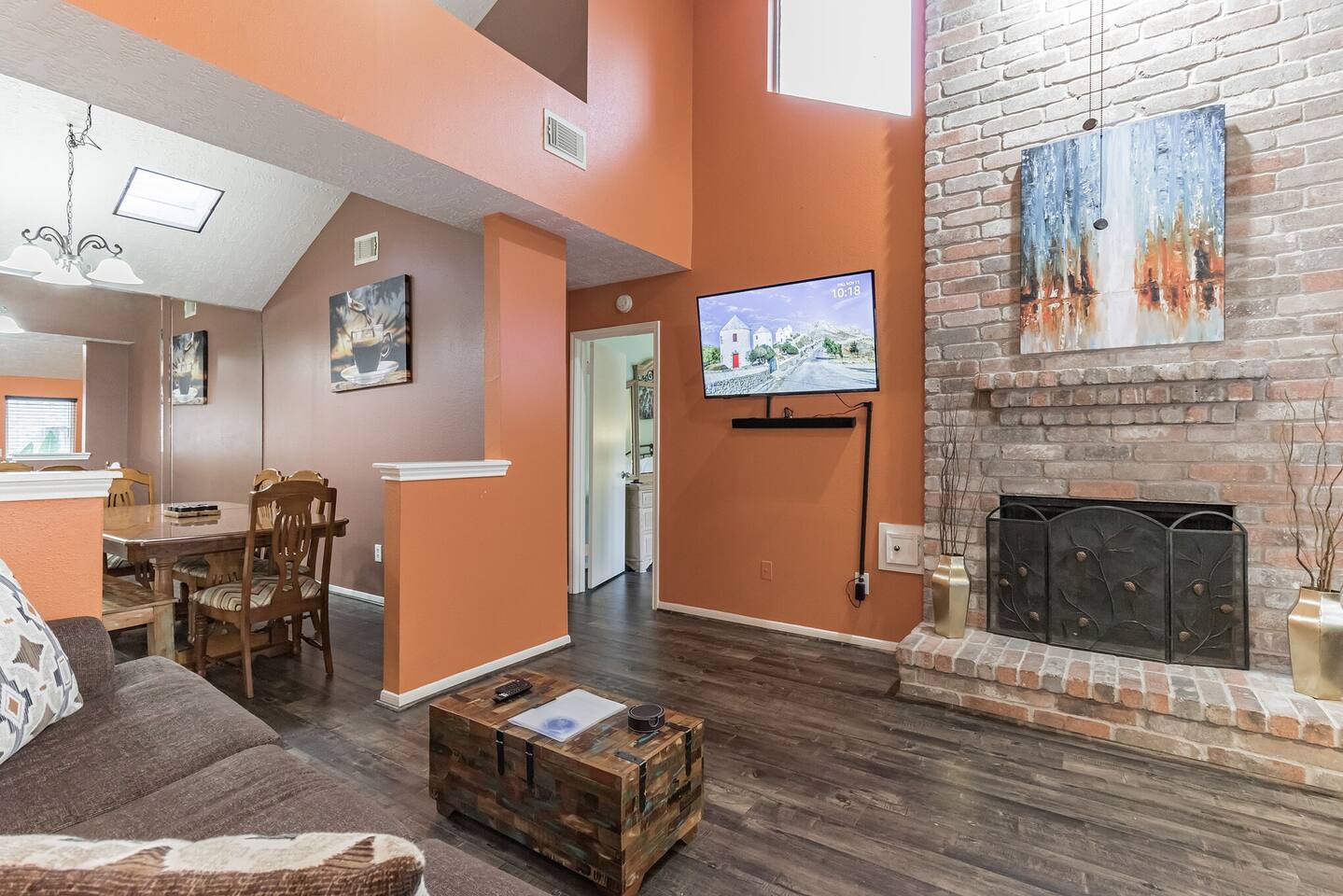 This house has an eclectic decor, space to stretch out, and enjoy the sound system to your favorite music. Step outside onto two side patios and enjoy the breeze as you sit in the lounge chairs. The house has an enclosed gate for kids or pets, smart lock entries, and a garage remote and keypad.